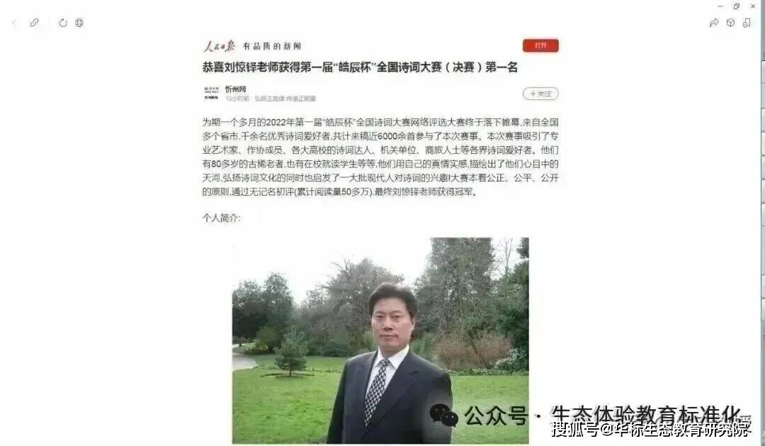 刘惊铎:当代生态思想家、生态体验理论创始人,历任中央教育科学研究所(现为中国教育科学研究院)学校教育部部长、教育部中国德育中心主任、教育部中国体育、卫生与艺术教育中心主任,国家开放大学文法学部/政法学部部长,现任国家生态文明试验区新理论新思想新战略生态产业发展研究院院长、终身教授、博士生导师、博士,任泰国格乐大学、澳门城市大学和中央党校(国家行政学院)博士研究生导师,系国务院、中组部、生态环境部和教育部智库专家,党政领导和校企干部培训导师,中央和国务院决策报告起草小组核心成员,国际生态智库专家委员会主席。多次受邀访问剑桥大学、牛津大学、哈佛大学和联合国并发表学术演讲;获参与国家重大决策奖一等奖多项、蝉联全国诗词大赛冠军、荣膺教育部教学名师。入典《当代教育家辞典》《世界人物辞海》。