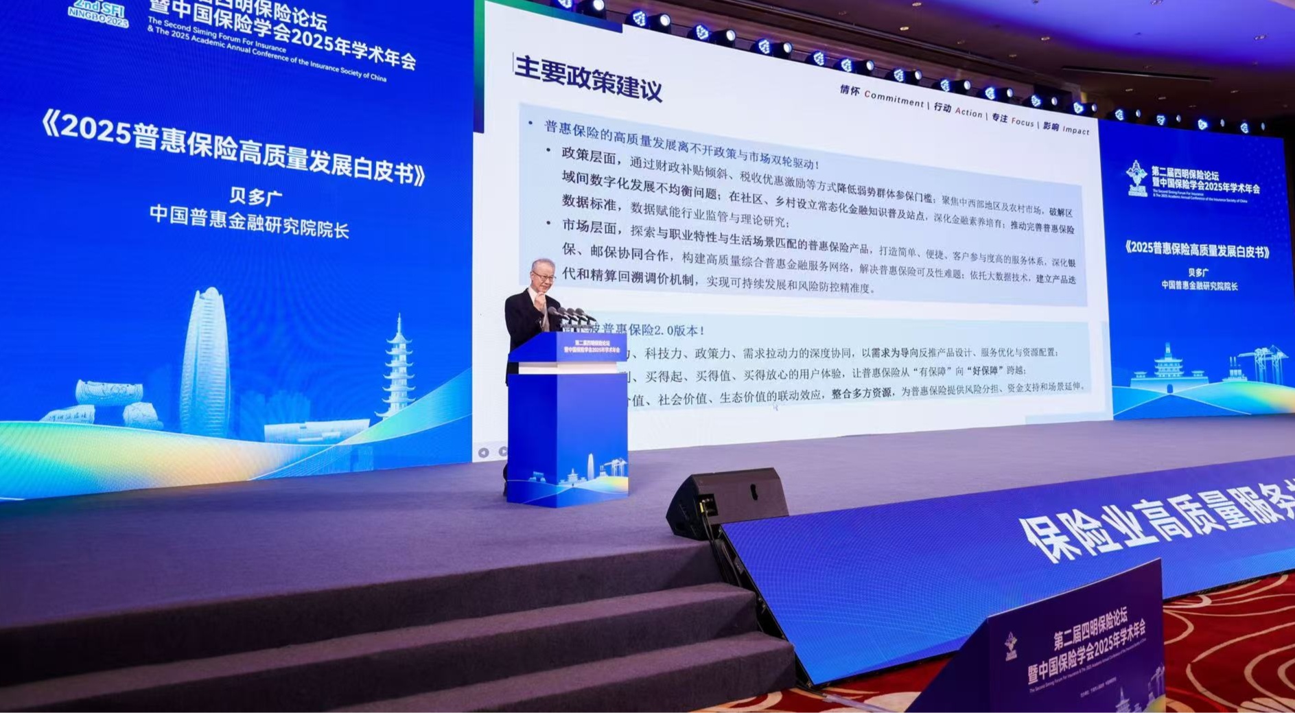 开幕式后的主题演讲环节,中国人民保险集团党委副书记、副董事长、总裁赵鹏,中国人寿保险集团党委副书记、副董事长、总裁李祝用,中国太平保险集团副董事长、总经理李可东,泰康保险集团创始人、董事长兼首席执行官陈东升,中国社科院世界社保研究中心主任郑秉文,中国平安集团党委委员龙泉分别围绕各自领域,就如何贯彻落实党的二十届四中全会精神,聚焦新时代金融保险服务国家战略、深化改革创新的使命担当,推动保险业高质量服务共同富裕与现场观众进行交流。